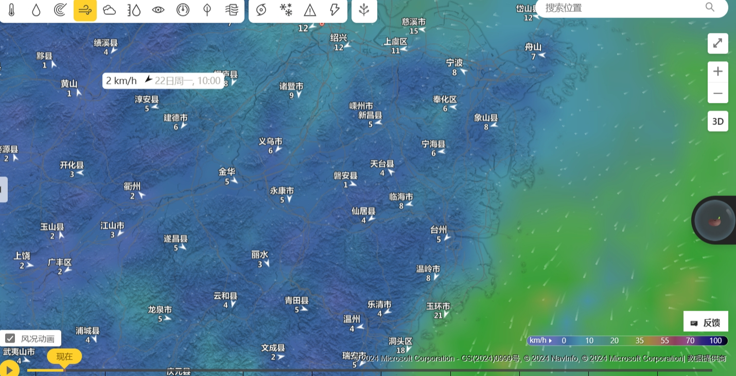 东北风3到4级,阵风可能更大。