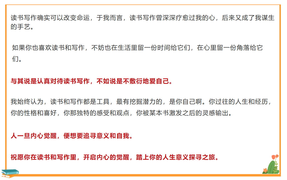 总结起来,是读书和写作这两件事,改写了我的人生轨迹。